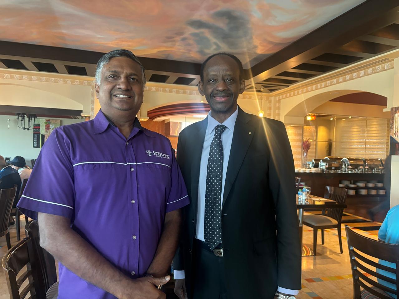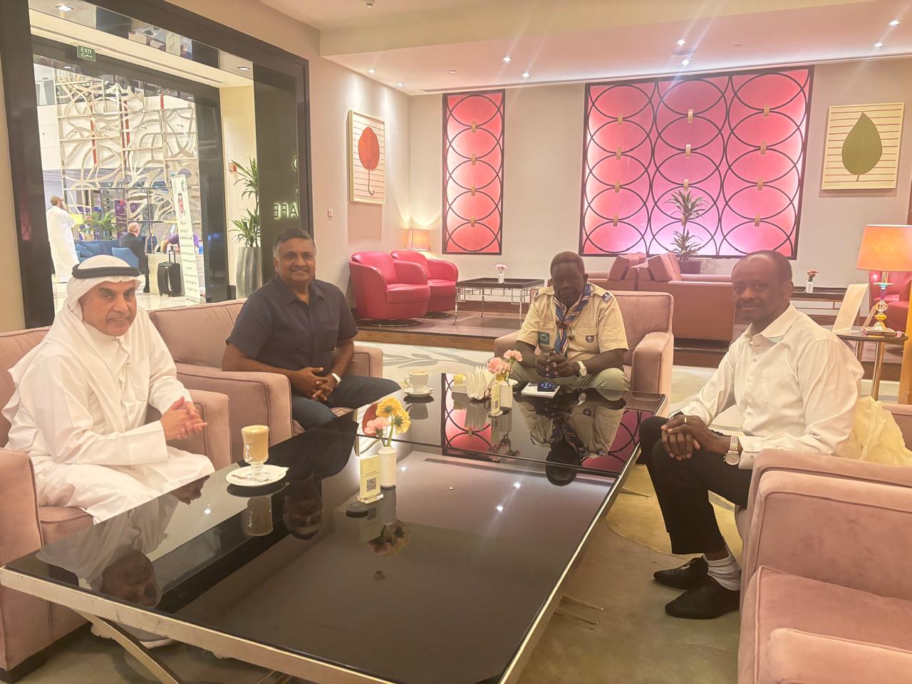 Mr. Fernando had discussions with Dr. Abdullah Al Thuraiji, President of the Arab Scout Committee and Kuwait Scout Association. It was agreed to work in collaboration between the two Associations on exchange programs for Scouts and Leaders and on ScoutTraining. Both parties agreed to enter into a MOU to strengthen the collaboration between the two National Scout Organisations. Dr. Atif Abdelmageed, Advisor to the Arab Scout Parliamentary Union was the facilitator of the meetings.