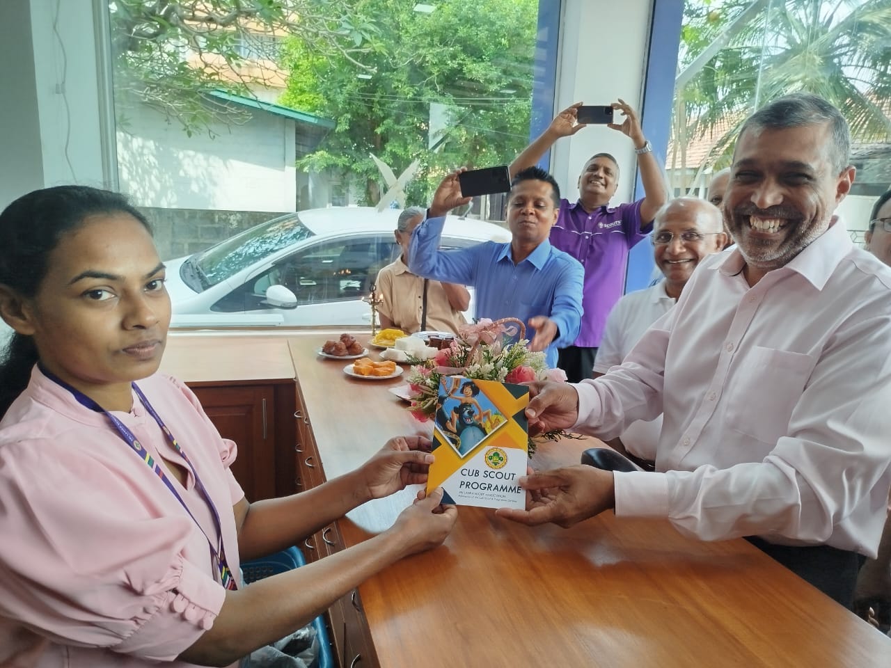 The former Asst. Chief Commissioner Administration Air Vice Marshal Ruwan Andrew Wijesuriya made the first purchase at the shop. He was responsible during his tenure for the construction of the Scout Shop along with the Headquarters Office Renovation with the assistance of the labour provided by the Sri Lanka Navy.