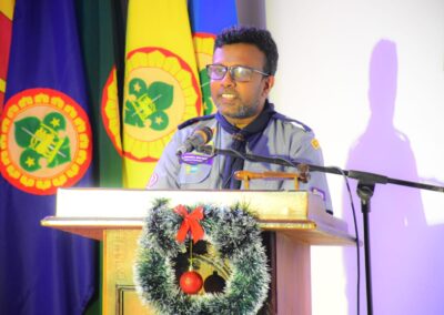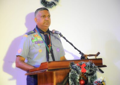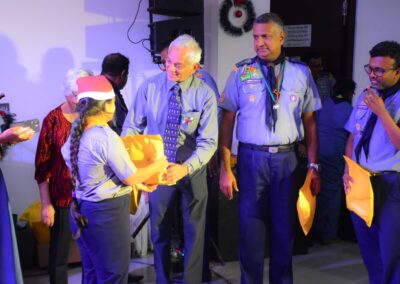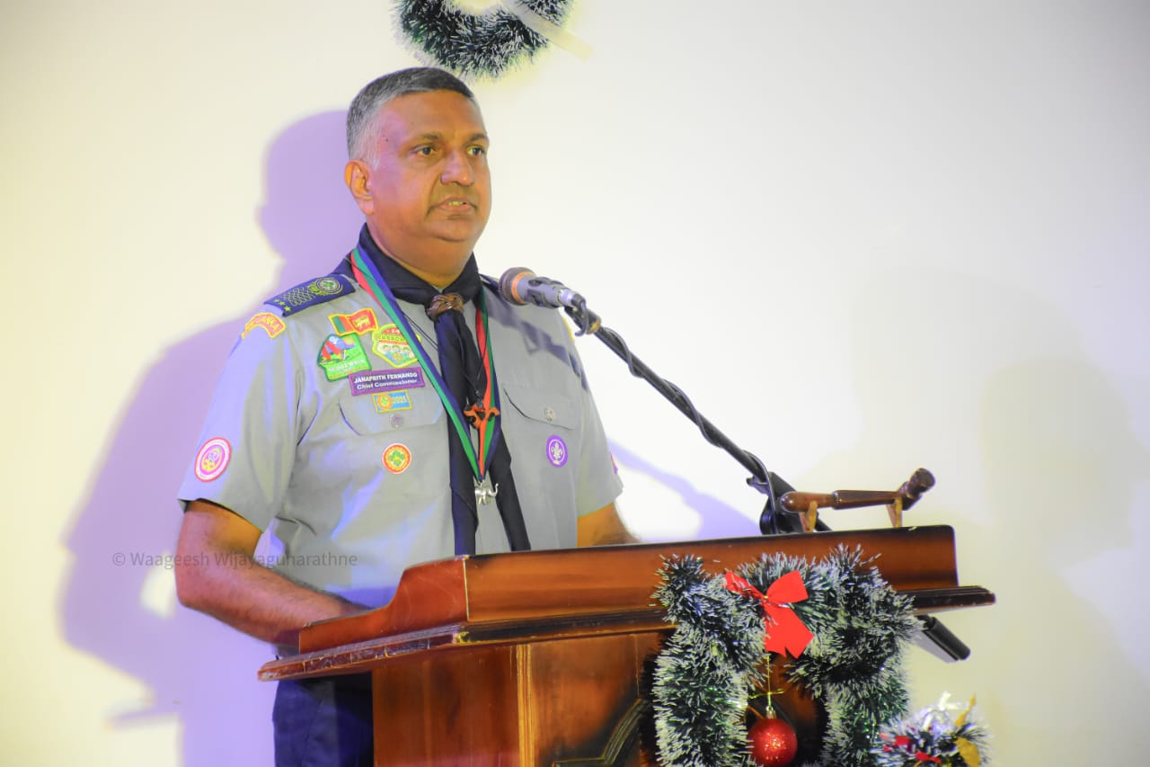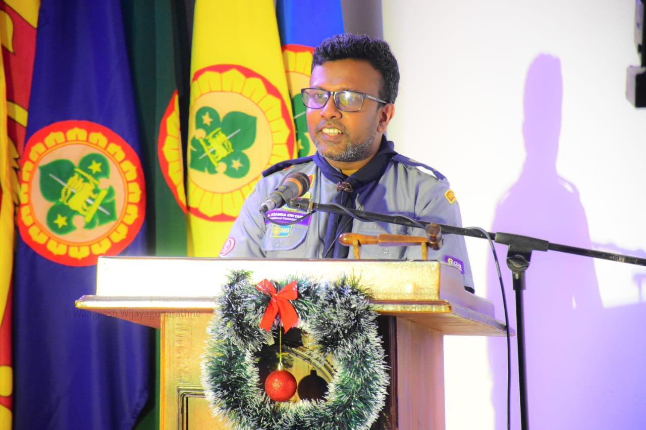 and Mrs. Priyani Halpe. The carols commenced with the lighting of candles and the Welcome address delivered by the Chief Commissioner Attorney at Law Mr. Janaprith Fernando, Chairman of SAANSO, (WOSM Consultant and APR Value volunteering Sub Committee Chairman. He welcomed the Chief Guests and all invitees, Commissioners, Scout Leaders and Scouts present and online from India, Nepal and Bangladesh .