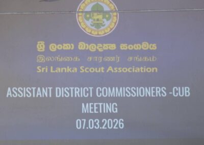 The Assistant District Commissioner cub meeting was held 2026-03-07 under the patronage of Assistant Chief Commissioner Miss Chandrani Fernando. Headquarters Commissioner Sanjaya Perera and Headquarters Commissioner Priyanka Lakmali also participated in this important meeting. A comprehensive lecture on the future vision and work plan for Youth Development was delivered to Chief Commissioner Attorney-at-Law Manoj Nanayakkara, who also engaged in a friendly discussion with the participants regarding the challenges faced at the district level in scouting.